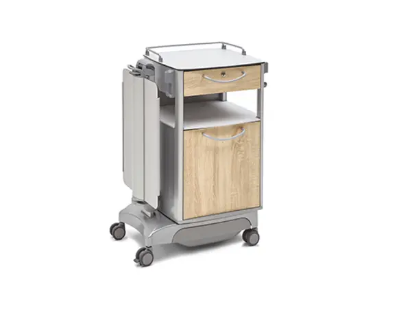 The easy transport of the Quado ensures relief during the daily routine. It can be attached to the head or footboard of almost all current Stiegelmeyer hospital beds without effort, and thus can be transported together with the bed when a patient is relocated. The joint transport saves care staff from having to carry and, if applicable, document the personal items. During a simple transport the Quado can be rolled along with the bed.
