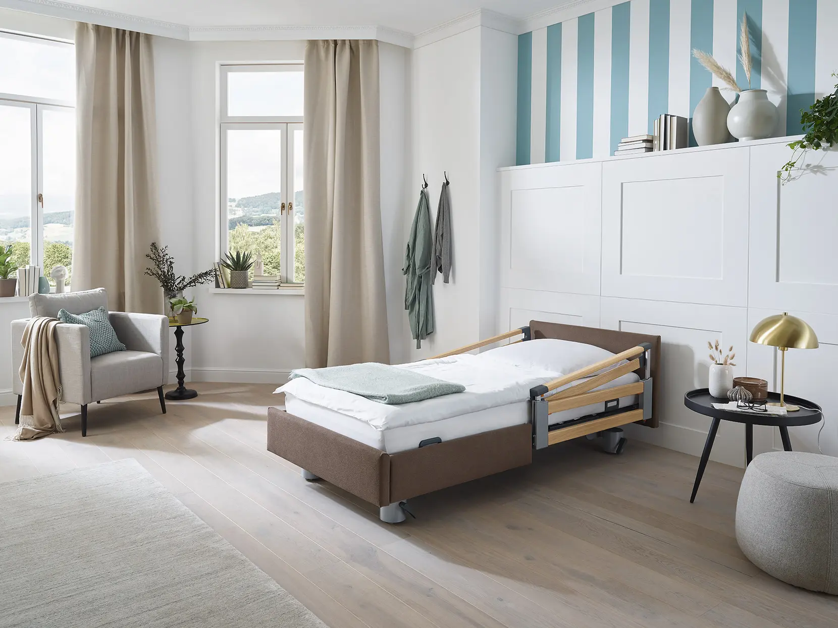 The lift function to help you stand up and the chair position for relaxed reading or watching television bring a new quality of life to day-to-day living. With its range of upholstery and wood decors, the Libra is also very pleasing to the eye.