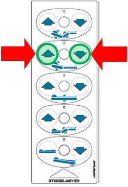 Call up "Service" control level 3: Press the UP and DOWN buttons simultaneously and at the same time hold the top end of the LCD handset briefly against the magnetic unlocking key at the foot end of the bed.