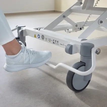 Em caso de emergência cada instante conta. A posição de CPR e de Trendelenburg podem ser rapidamente ajustadas com todos os aparelhos de comando da Evario one. A alavanca CPR manual na cabeceira economiza ainda mais tempo. A cabeceira e a peseira podem ser removidas em segundos, para um melhor acesso ao paciente.