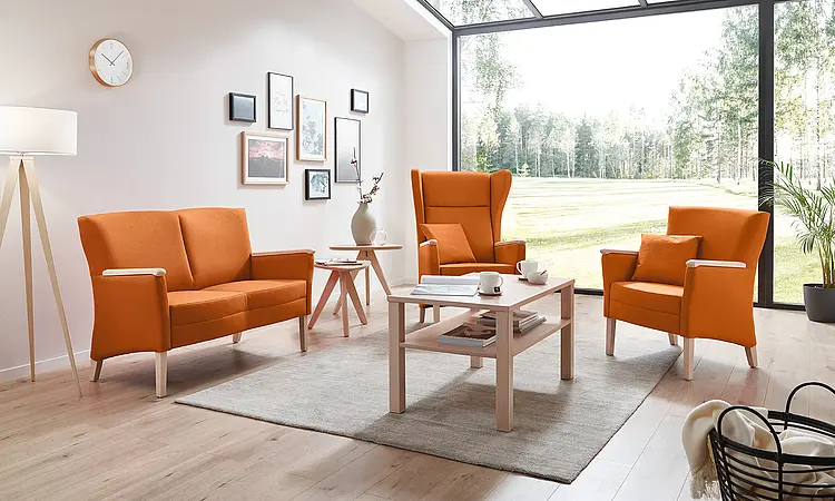 A linha Luna de assentos traz um toque elegante e um clima de lounge para qualquer sala de espera ou área comum. Com apoios de braço em madeira ou laterais opcionais, as poltronas e os sofás combinam alto conforto e linhas limpas com uma sensação de aconchego sofisticado. Os confortáveis sofás de vários lugares acomodam até grupos maiores — ideais, por exemplo, para incentivar a interação social em lares de idosos.