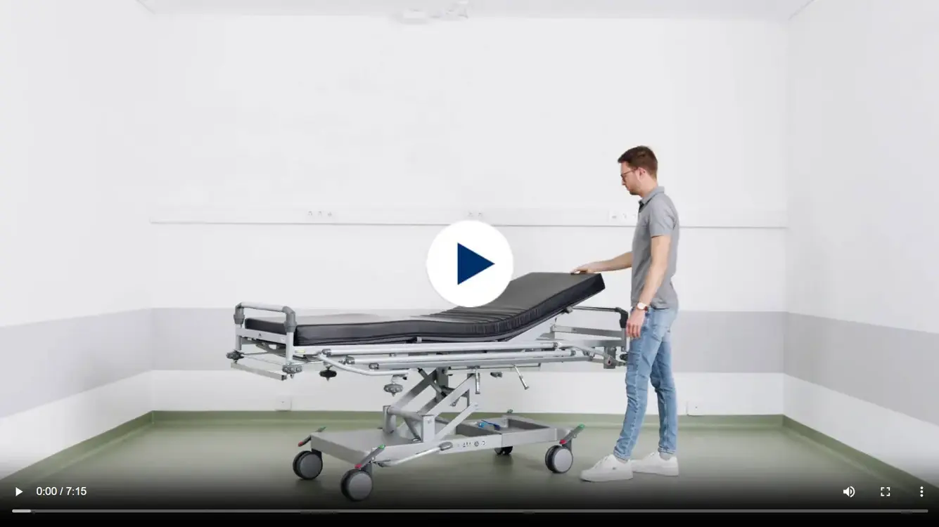Lernen Sie den Stretcher Mobilo in all seinen Details kennen: Unsere Einweisungsvideos zeigen Ihnen Schritt für Schritt die wichtigsten Funktionen, Bedienungen und Einstellungsmöglichkeiten. So unterstützen wir Pflegekräfte und Technikteams dabei, den Mobilo sicher, effizient und komfortabel im Alltag einzusetzen.