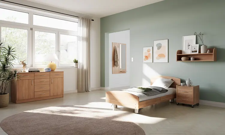 Eine wohnliche Umgebung kann die Lebensqualität pflegebedürftiger Menschen deutlich verbessern. Ein schönes Zimmer, das dem Geschmack und den kognitiven Bedürfnissen des Bewohners entspricht, fördert sein Wohlbefinden und seine Selbstständigkeit. Als ganzheitlicher Lösungsanbieter von Pflegebetten, Möbeln und Assistenzsystemen steht Stiegelmeyer für individuell abgestimmte Raumeinrichtungen.