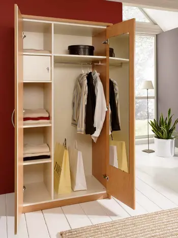 Durch einen Spiegel auf der Innenseite der Tür verwandelt sich der Schrank in ein kleines Ankleidezimmer.