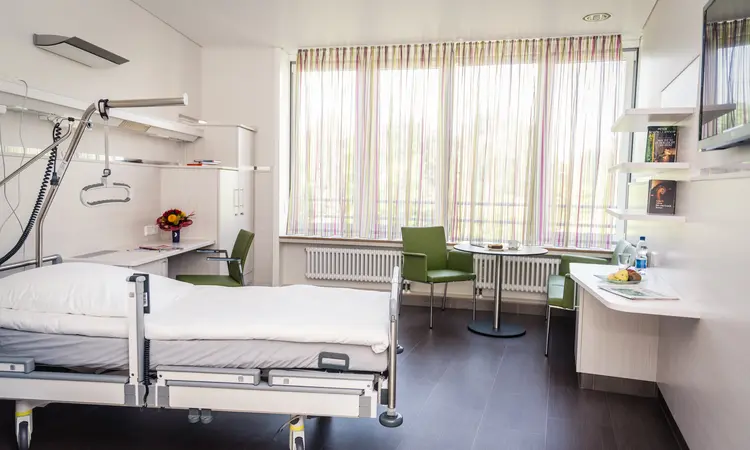For patients entitled to additional services, the Stadtkrankenhaus Schwabach hospital offers 18 single and double rooms that were completely remodelled and furnished with Stiegelmeyer contract furniture. The hospital extols the advantages of the rooms “with high-quality fittings, modern furniture and comforts such as a flat-screen TV and mini-bar”.