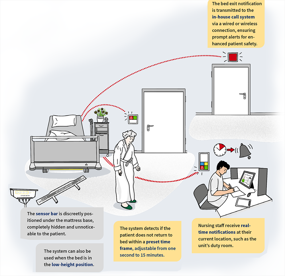 Positioned beneath the mattress, the system remains completely unobtrusive, ensuring patients experience no restrictions.