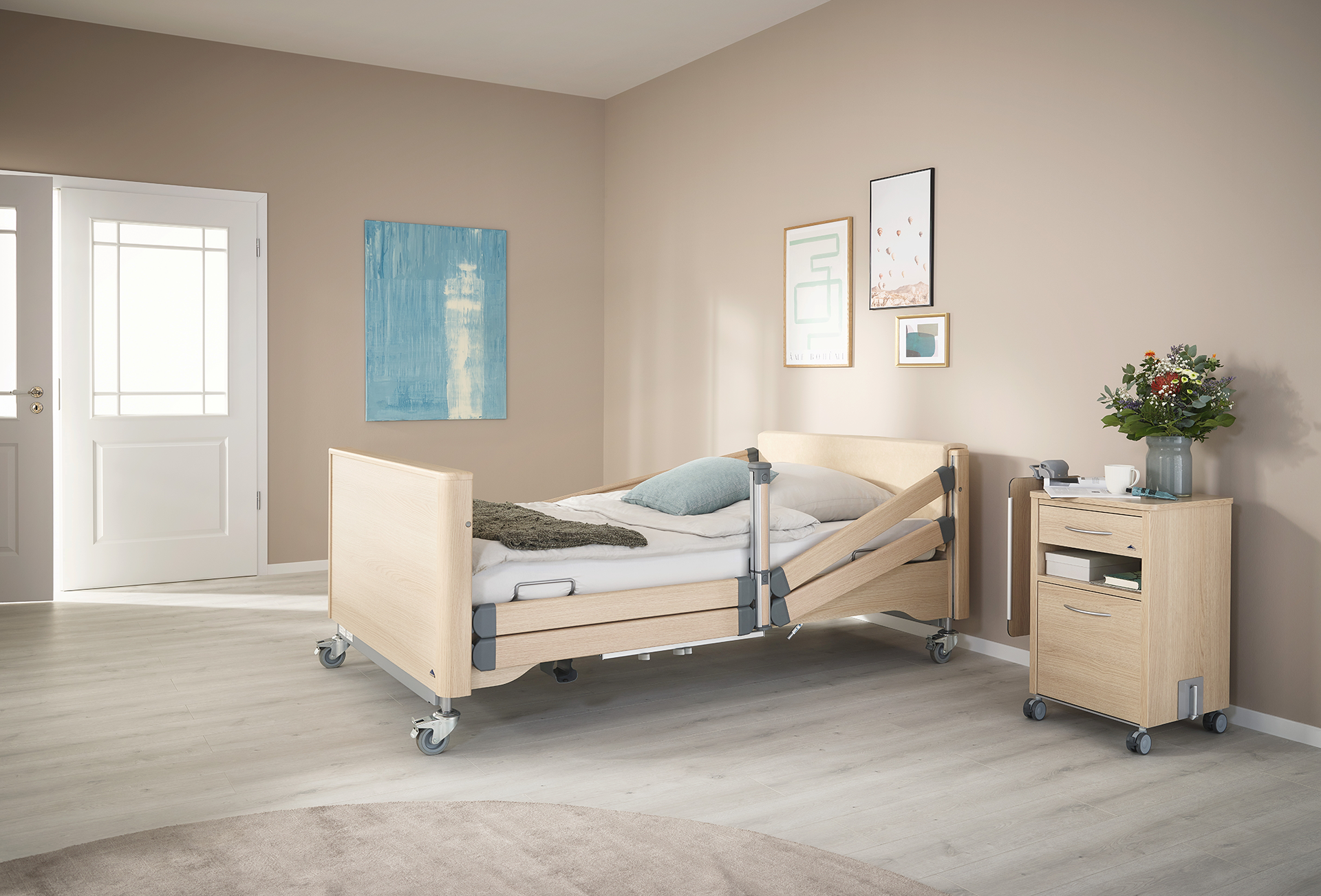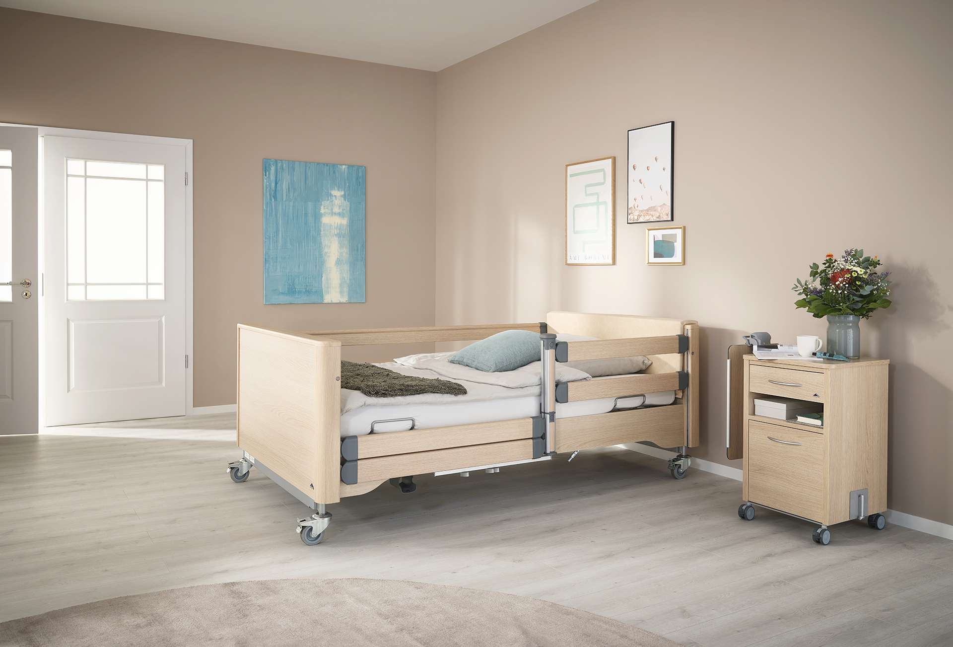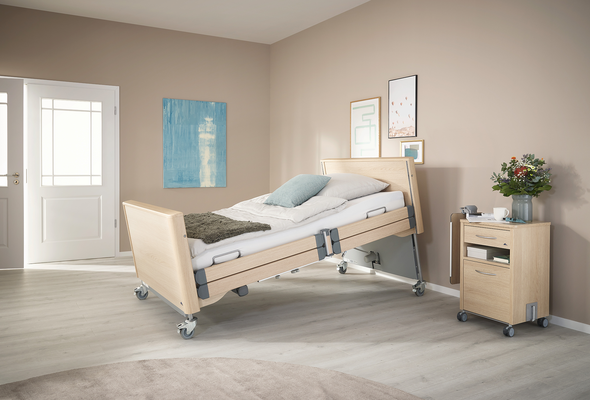 The following overview presents the technical data and equipment options for this model of bed. With a tailor-made configuration and visual design, and with suitable accessories, you can plan a bed that precisely matches your facility’s requirements and interior design. Your area sales manager will be happy to inform you about all the possibilities.