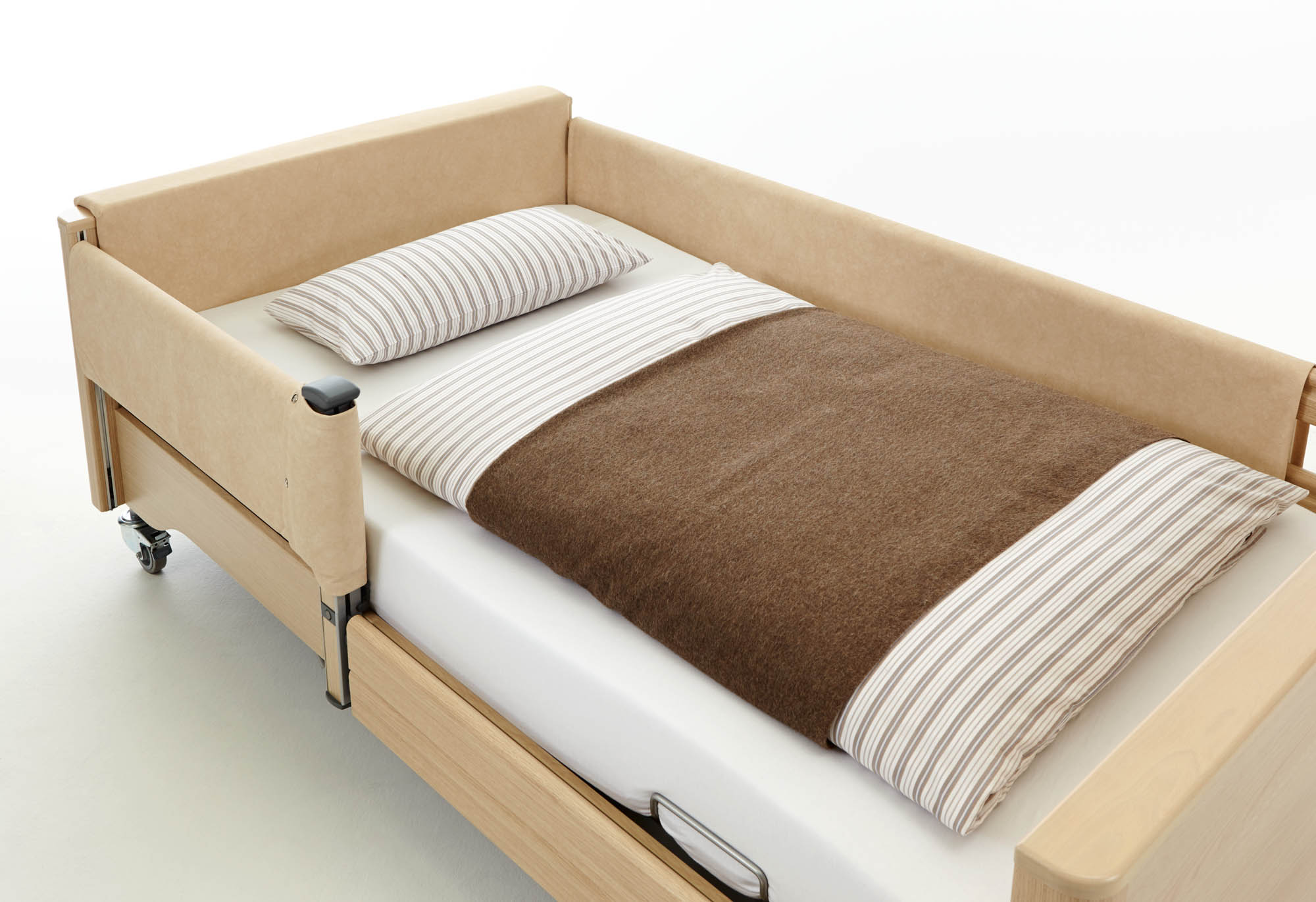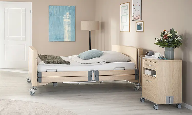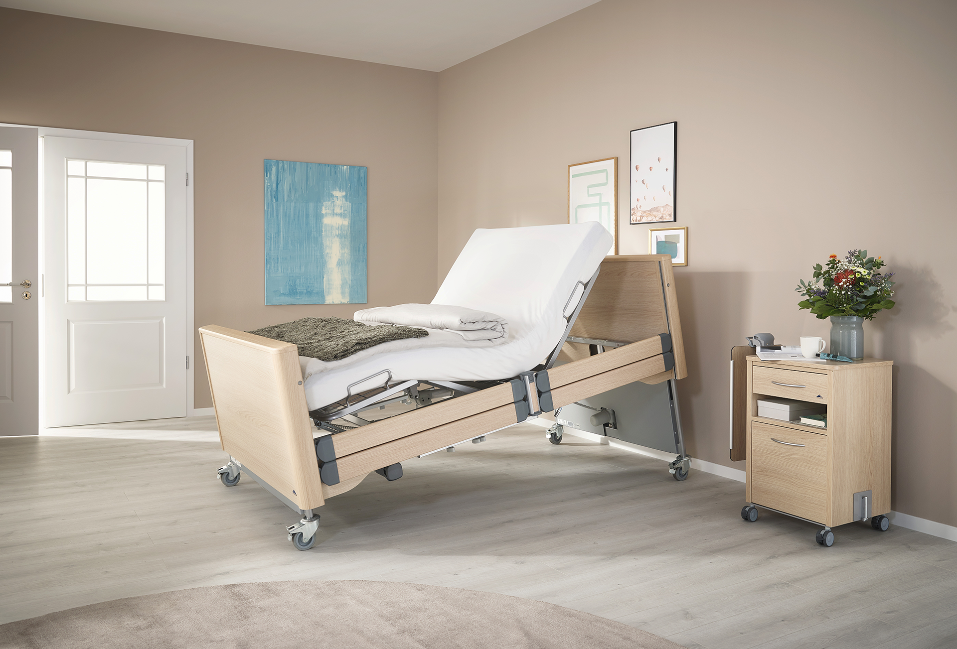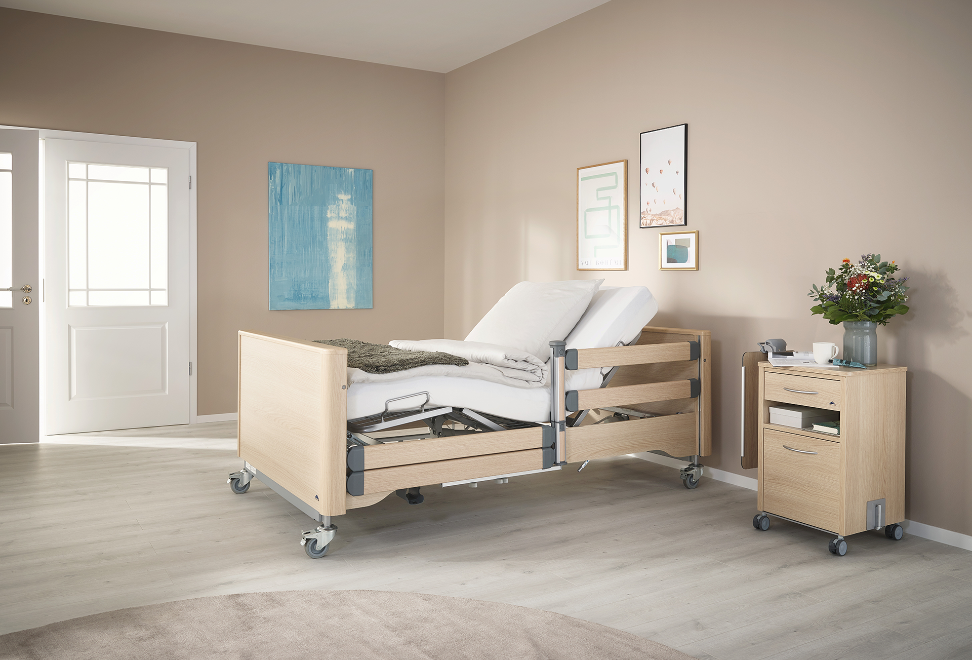 The following overview presents the technical data and equipment options for this model of bed. With a tailor-made configuration and visual design, and with suitable accessories, you can plan a bed that precisely matches your facility’s requirements and interior design. Your area sales manager will be happy to inform you about all the possibilities.
