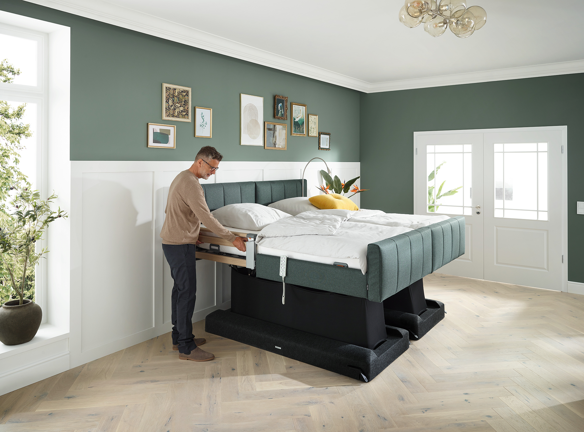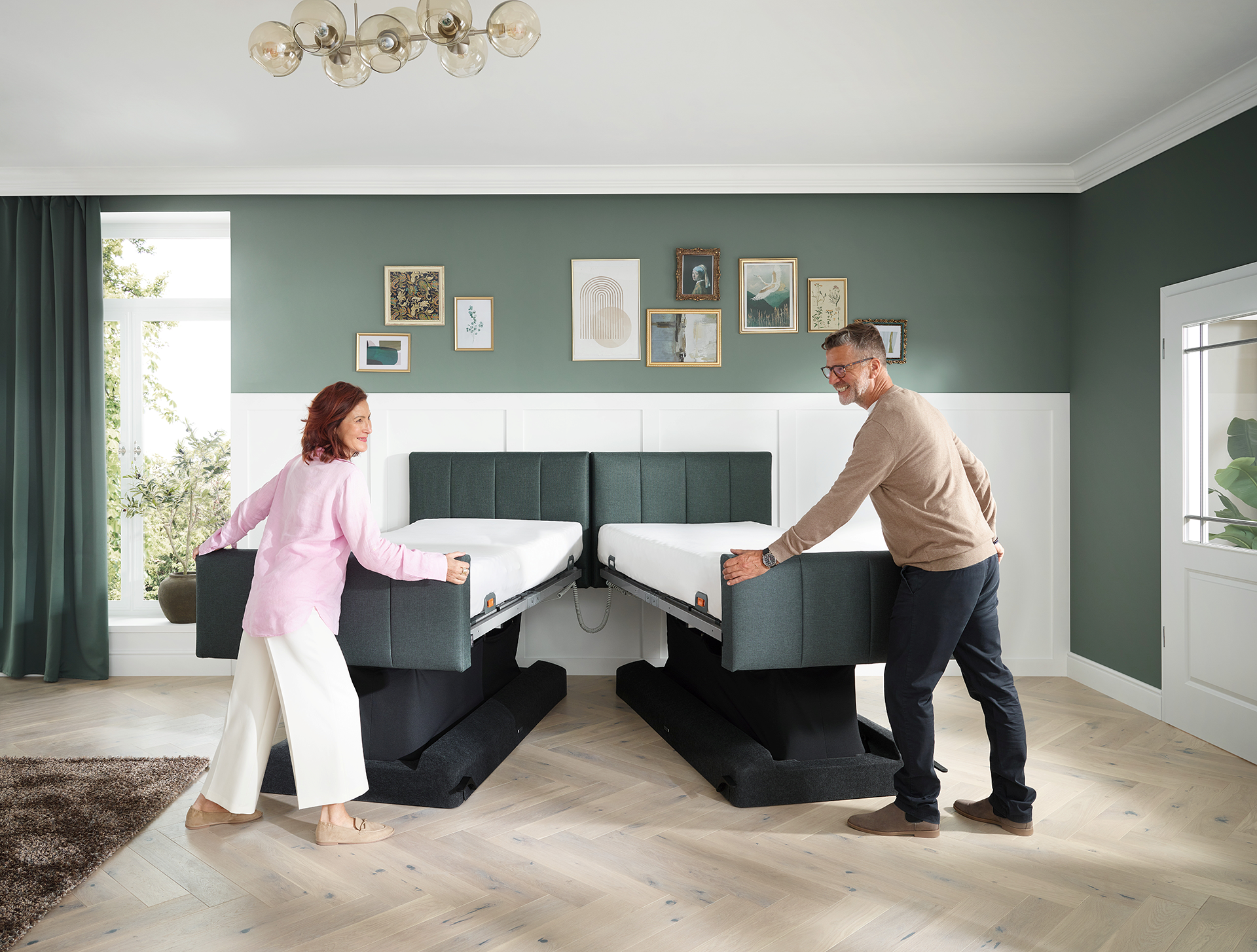 La cama lifestyle Libra - variante deluxe está disponible como cama individual o doble para solteros o parejas. Por primera vez en la familia de camas Libra, ofrecemos una cama para parejas de 2 metros de ancho que no deja nada que desear cuando se trata de dormir bien. Si lo desea, la cama de matrimonio puede dividirse en 2 camas individuales cuando sea necesaria una separación espacial, por ejemplo, por motivos de salud.