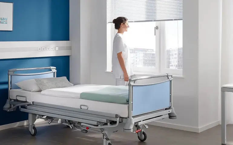 En la siguiente vista general encontrará los datos técnicos y las opciones de equipamiento de este modelo de cama. Con una configuración a medida y un diseño óptico, al igual que con los accesorios adecuados, es posible proyectar una cama que responda con precisión a los requisitos y el equipamiento de su institución. Su director de ventas regionales le informará encantado sobre todas las posibilidades.