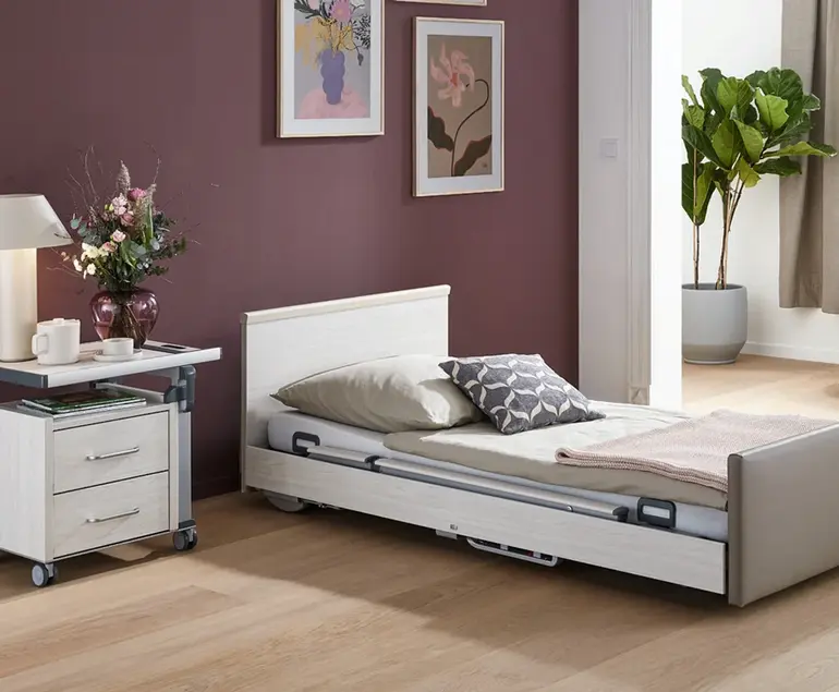 Vuoteet ja kalusteet auttavat hoivakodin asukkaita tuntemaan olonsa kotoisaksi. Niiden tulee olla kodikkaita, yksilöllisesti mukautuvia ja tuoda erityistä mukavuutta. Modernien hoitovuoteiden on täytettävä myös korkeat tekniset vaatimukset. Näin ehkäistään kaatumiseen tai putoamiseen liittyvää loukkaantumisriskiä liikkumisen vapautta rajoittamatta sekä mahdollistetaan hoitohenkilöstön ergonominen työskentely. Stiegelmeyer tarjoaa toimivia ratkaisuja hoivakodin arjen haasteisiin
