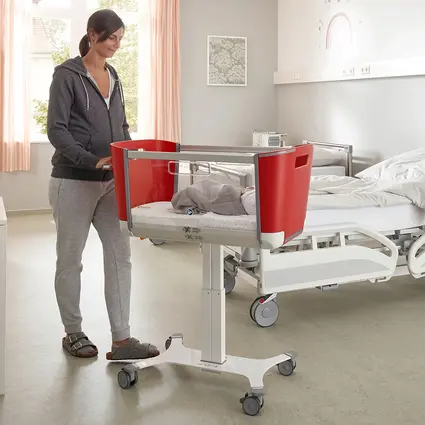 HELPPOKÄYTTÖINEN – Vastasyntyneen sängyn korkeutta säädetään kätevästi kaasujousella.