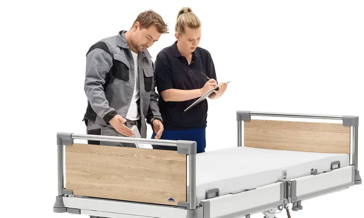 Varaosat ja korvaavat laitteet ovat nopeasti saatavilla, minkä ansiosta pystymme aina tarjoamaan täydellistä huolto- ja korjauspalvelua. Ensiluokkaisen palvelun takaavat paitsi ammattitaitoinen henkilökunta myös sairaalasänkyjen ja hoitovuoteiden kattava varaosavarastomme Saksan Herfordissa.