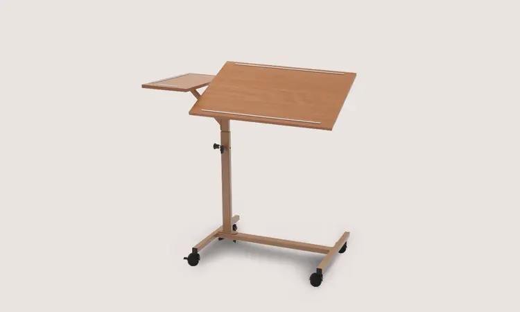 À l’aide du plateau de lit en 2 parties de la Duo, l’occupant peut déposer une tasse de café sur la table tout en utilisant la partie pivotante en tant que pupitre de lecture.
