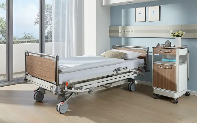WYGODNA OBSŁUGA – barierki boczne Protega wykonane z tworzywa sztucznego opadają w łagodny sposób. Opcjonalny panel sterowania jest wyposażony w 3 poziomy sterowania przeznaczone dla pacjentów, opiekunów i serwisantów. Protega to jedyne tego typu zabezpieczenie boczne, które jest przystosowane do automatycznej dezynfekcji.