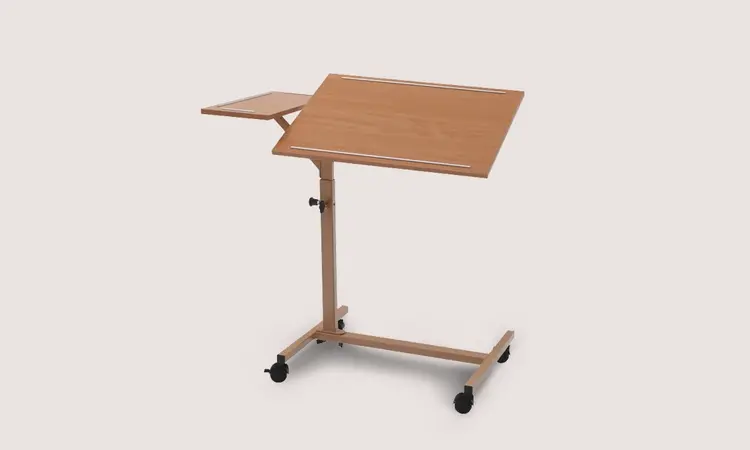With the Duo's 2-part tabletop, the resident can comfortably place a cup of coffee on the table and at the same time use the tiltable section as a bookrest.